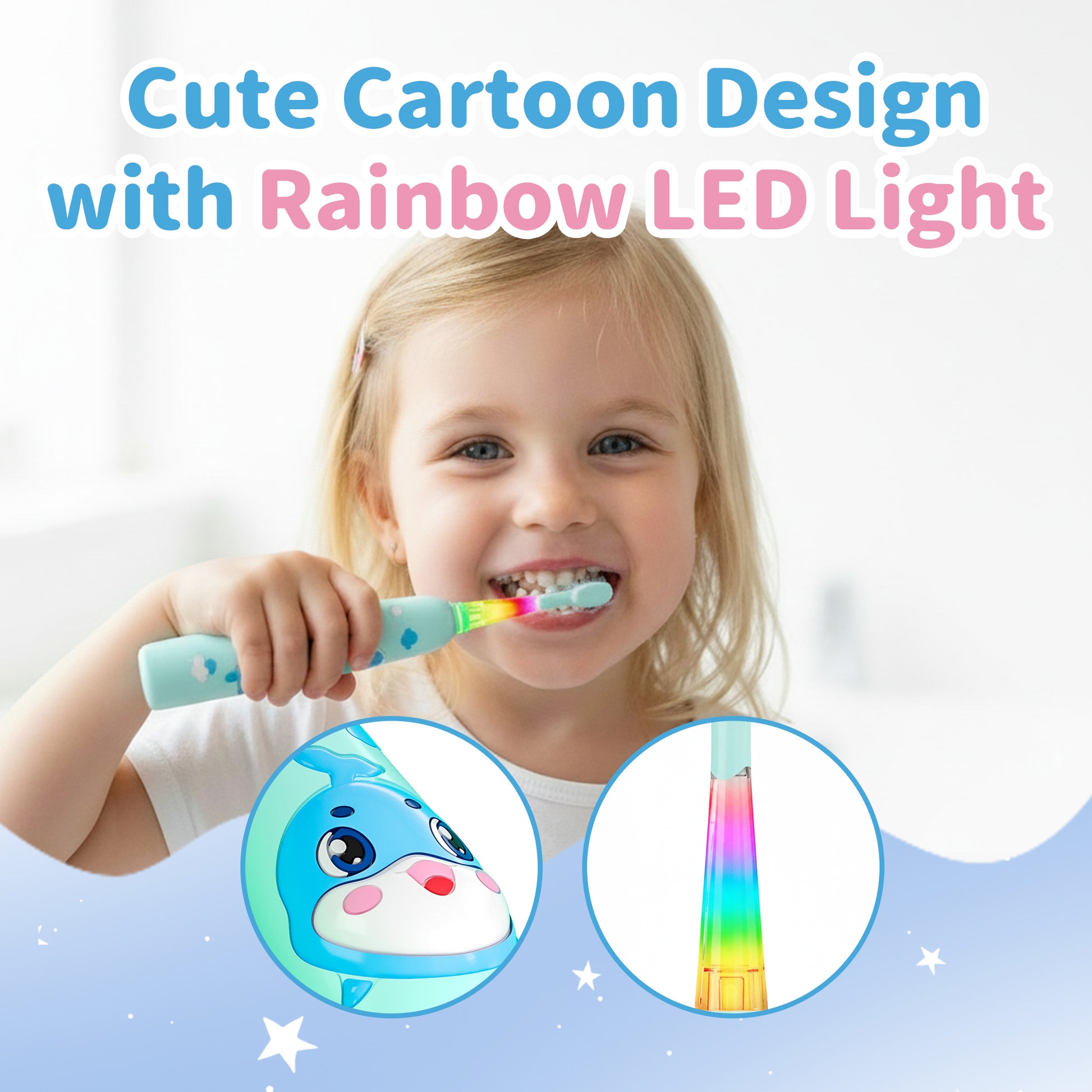 The playful appearance and colorful rainbow LED light make brushing visually exciting, encouraging children to brush willingly and consistently.
