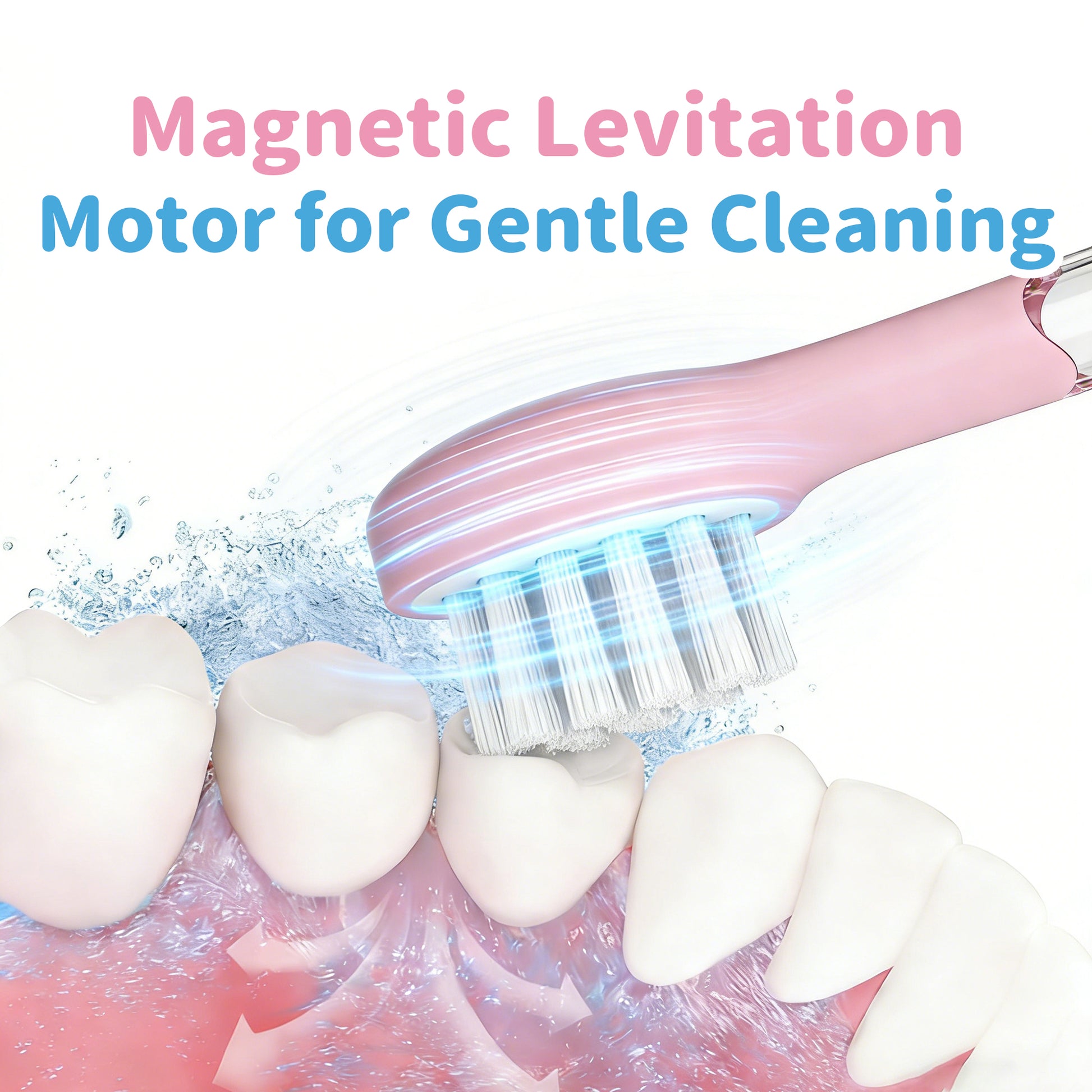 The magnetic levitation motor delivers stable, efficient vibration while remaining gentle on teeth and gums, ideal for children aged 0–6.