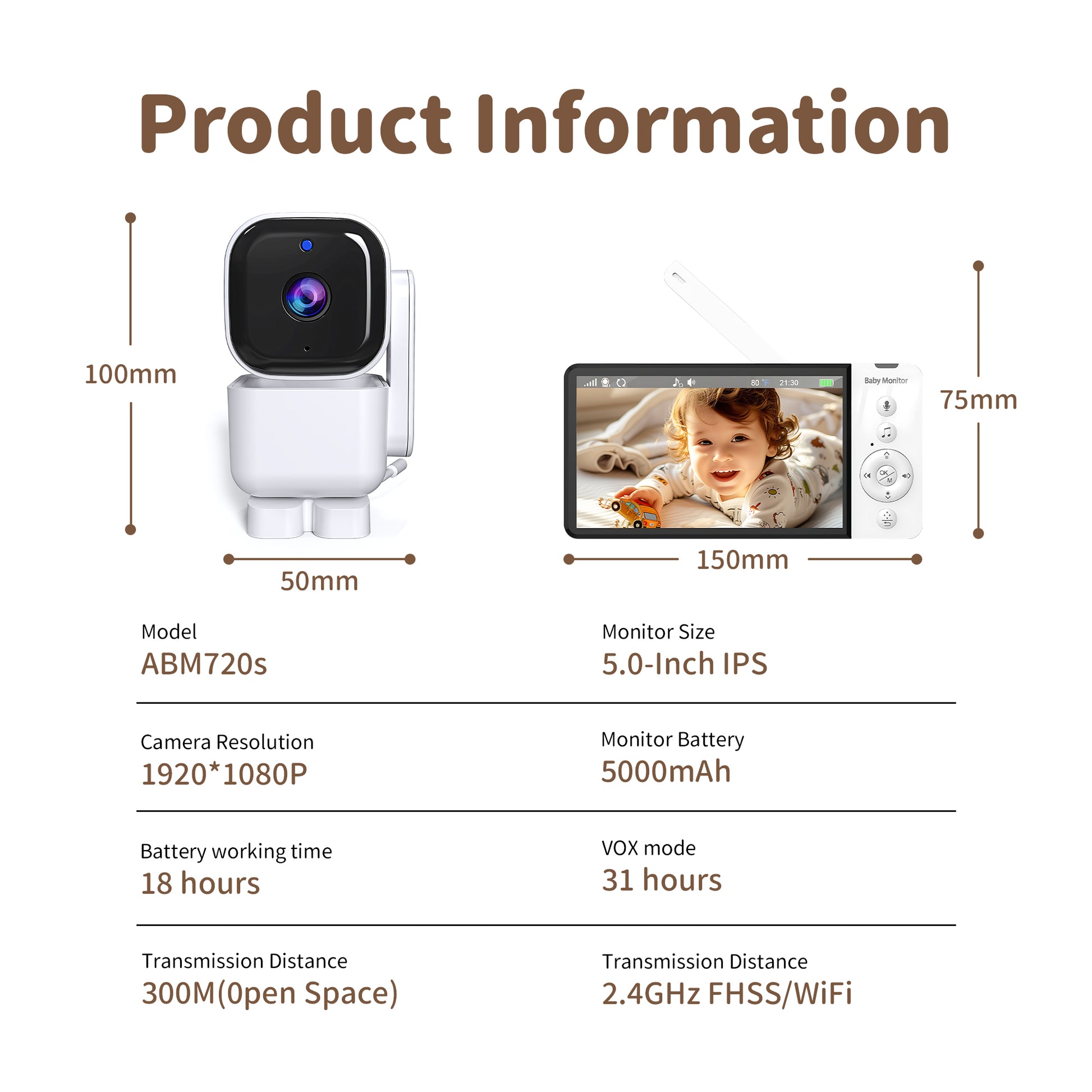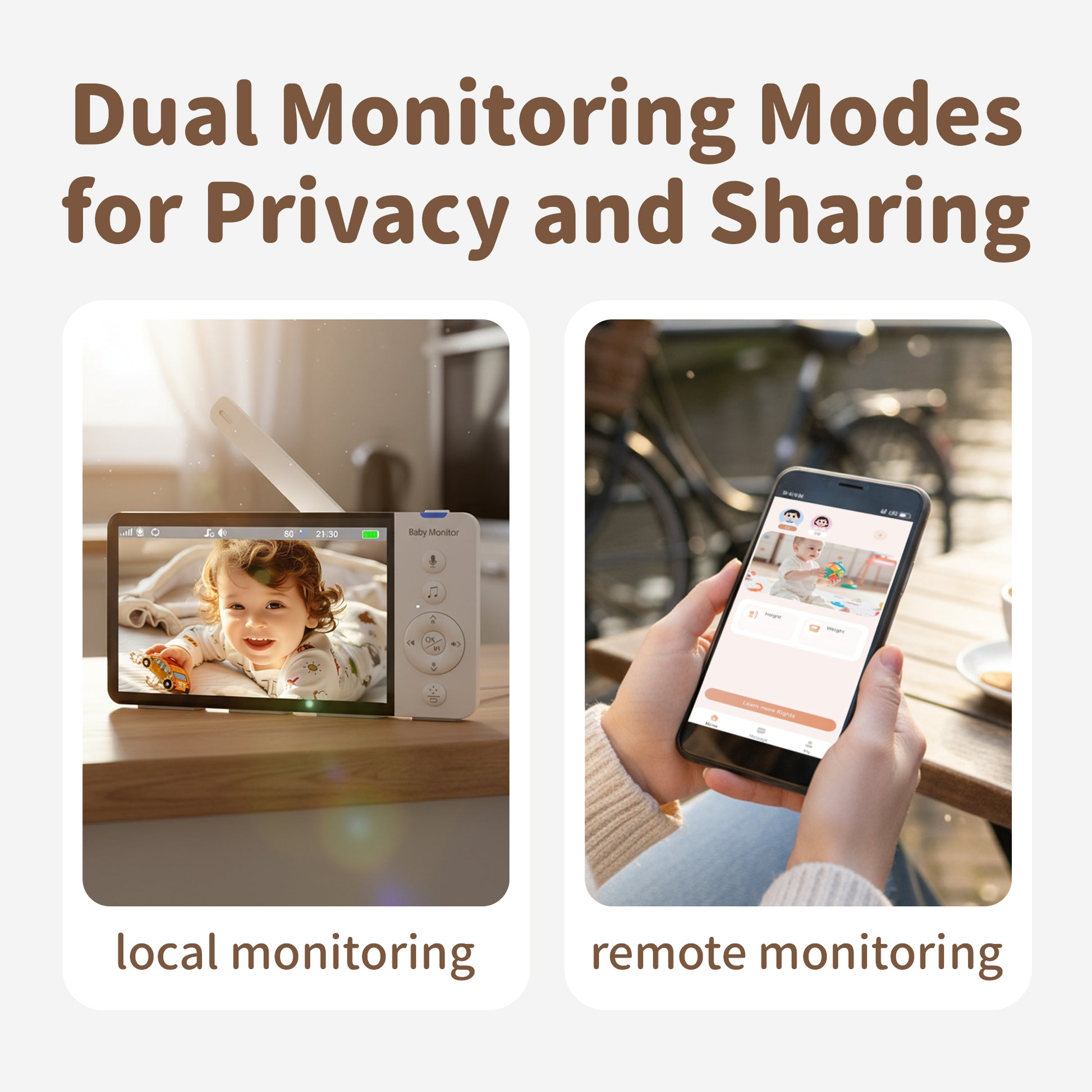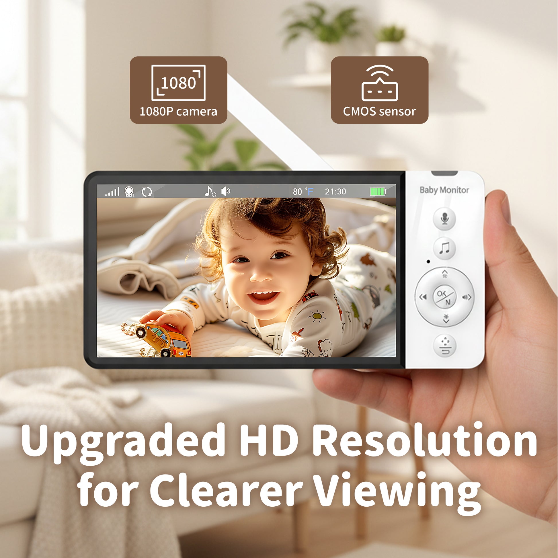 This premium baby monitor is an upgraded solution designed for modern families who want both privacy and connected convenience. Featuring a larger 5 inch high definition display and enhanced 720P camera resolution, it delivers clearer, more detailed visuals compared to basic baby monitors. Parents can monitor their baby directly from the dedicated screen at home or use the companion app for remote viewing, giving families the freedom to choose how and when to stay connected.